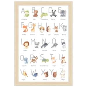 WANDStyle Gerahmtes Poster für Kinderzimmer Alphabet Deutsch 30 x 45 cm