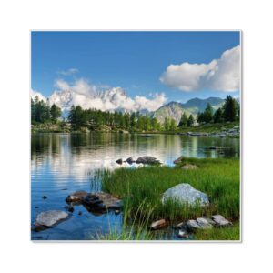 Banjado Magnettafel 50x50cm Magnetwand Weiß Aus Metall Magnetpinnwand Pinnwand Inkl. 4 Magnete Motiv Gebirgssee