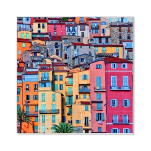 Banjado Magnettafel 50x50cm Magnetwand Weiß Aus Metall Magnetpinnwand Pinnwand Inkl. 4 Magnete Motiv Häuserberg